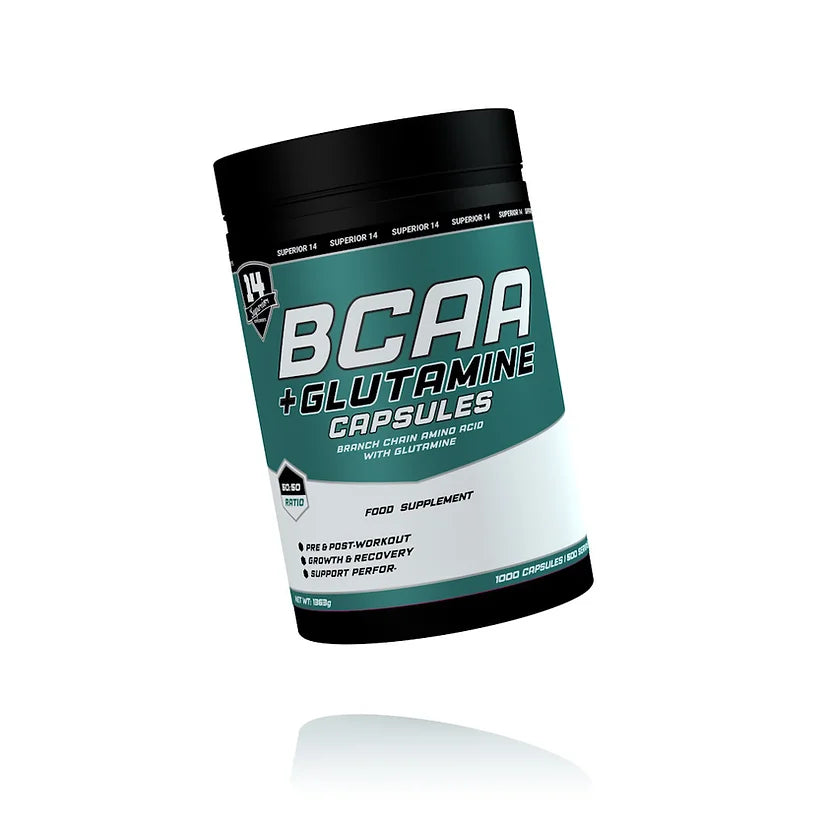 Discover a superior level of performance, with Superior 14 BCAA + Glutamine capsules. This Amino Acid capsules delivers a whopping 1200mg BCAA, plus 1200 mg Glutamine per serving.